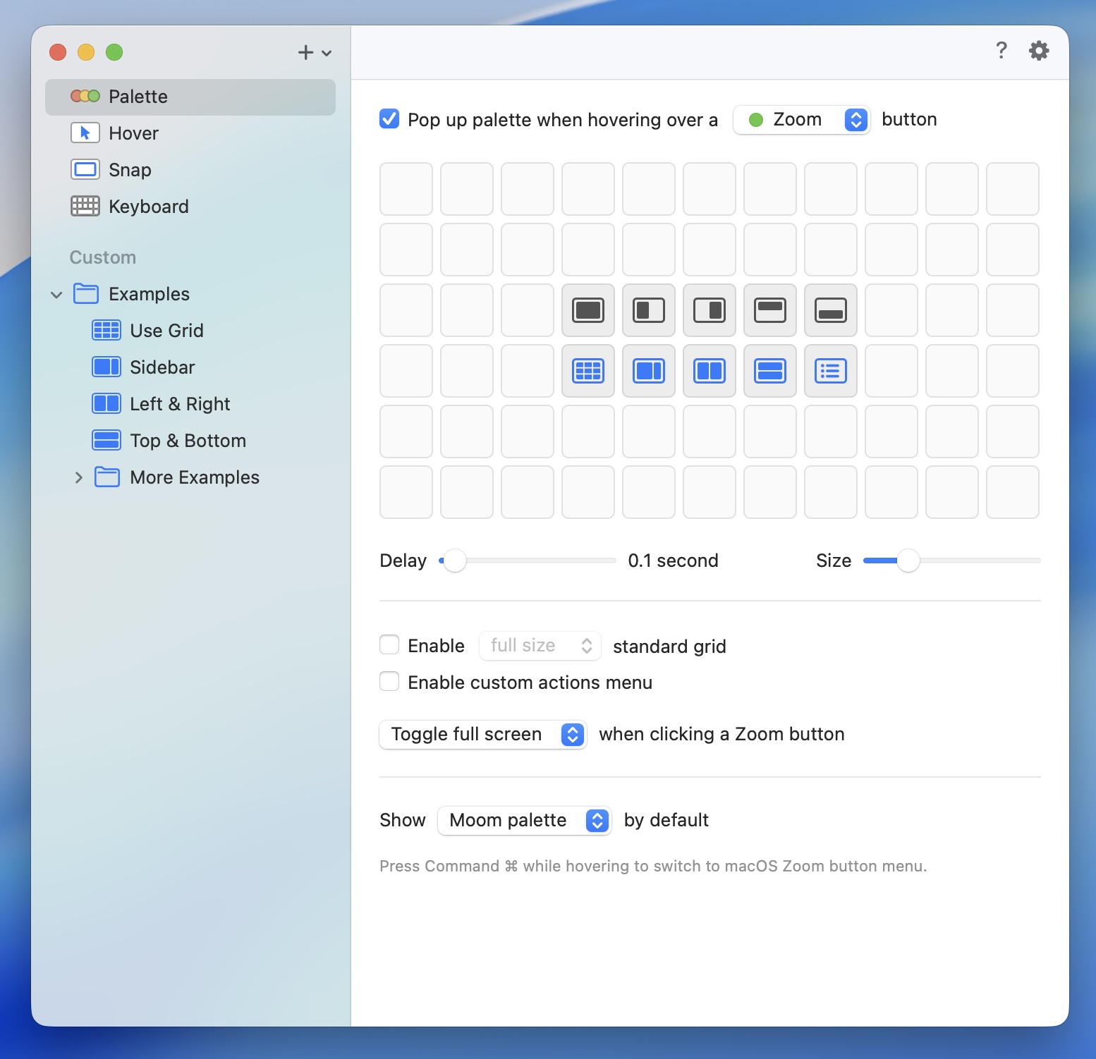 简洁状态显示:菜单栏图标清晰显示当前窗口管理状态,并提供快速访问常用功能的便捷入口。