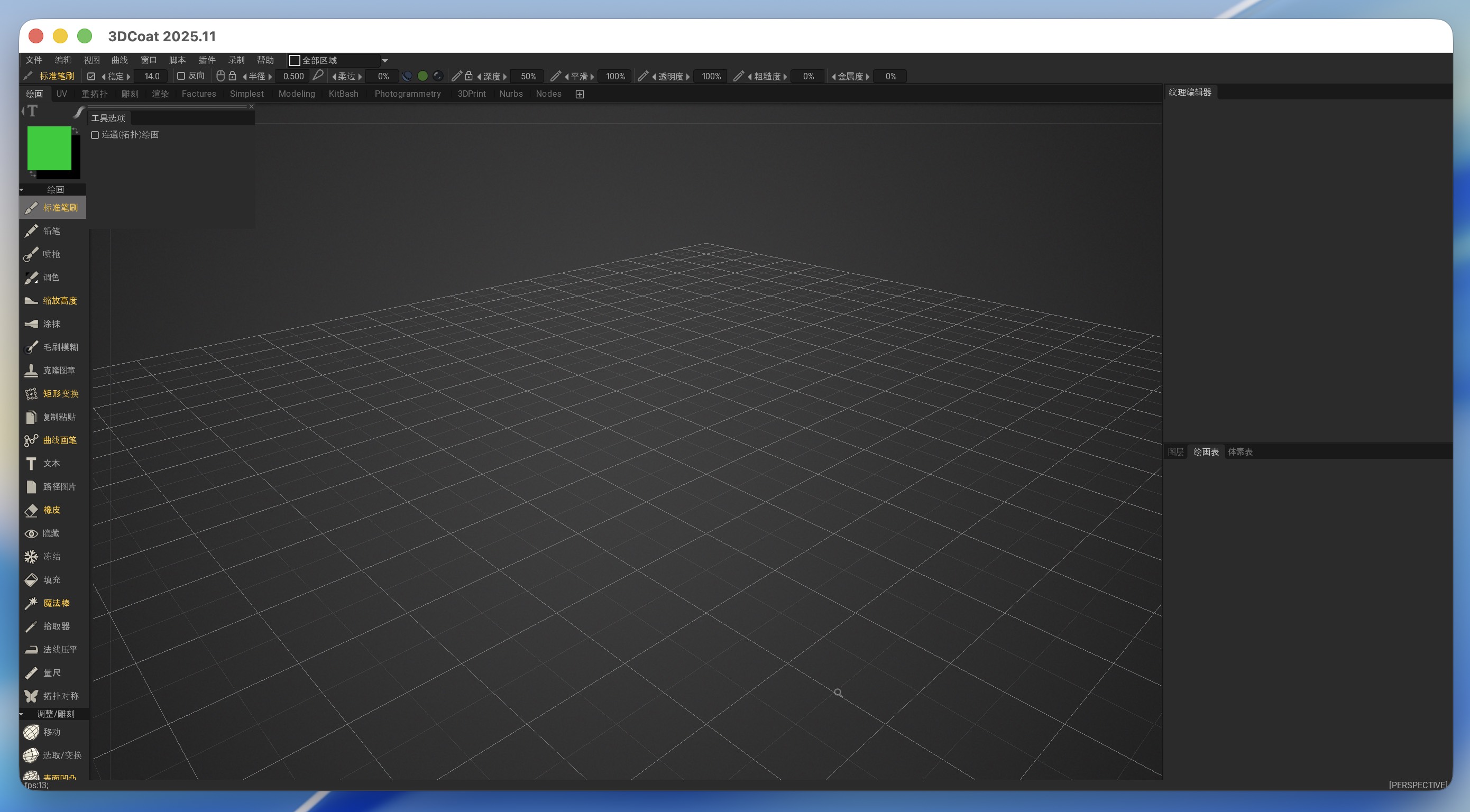 2. 动态拓扑:自动优化网格密度,局部细分精度可达2000万面实时雕刻。